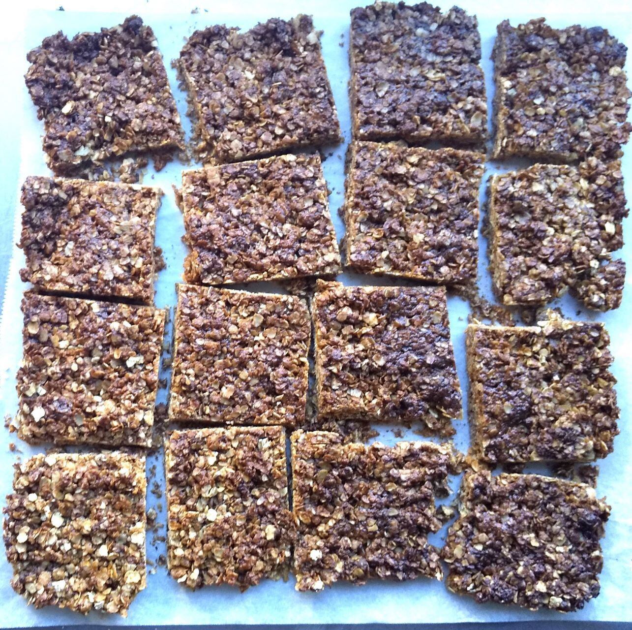 フラップジャックにピーナッツバターとチョコチップを加えました。